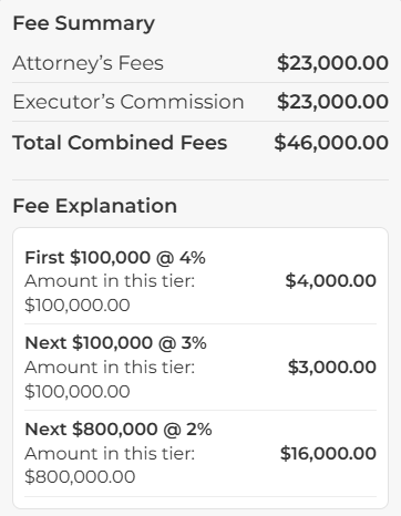 Use our California Probate Fee Calculator to estimate attorney and executor fees for a formal probate. This calculator is provided for educational purposes only; it does not constitute legal advice and is not a substitute for legal advice.
